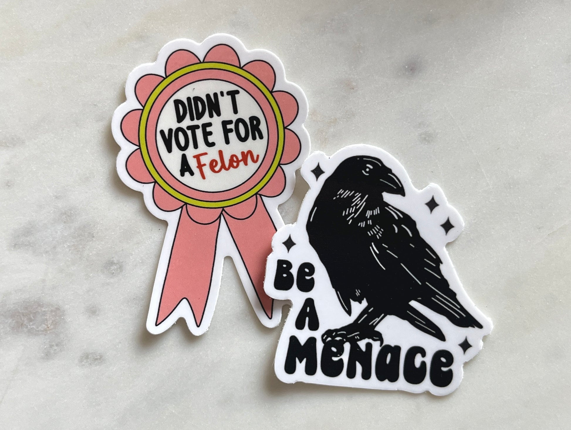 "Didn't vote for a felon" and "Be a Menace".
