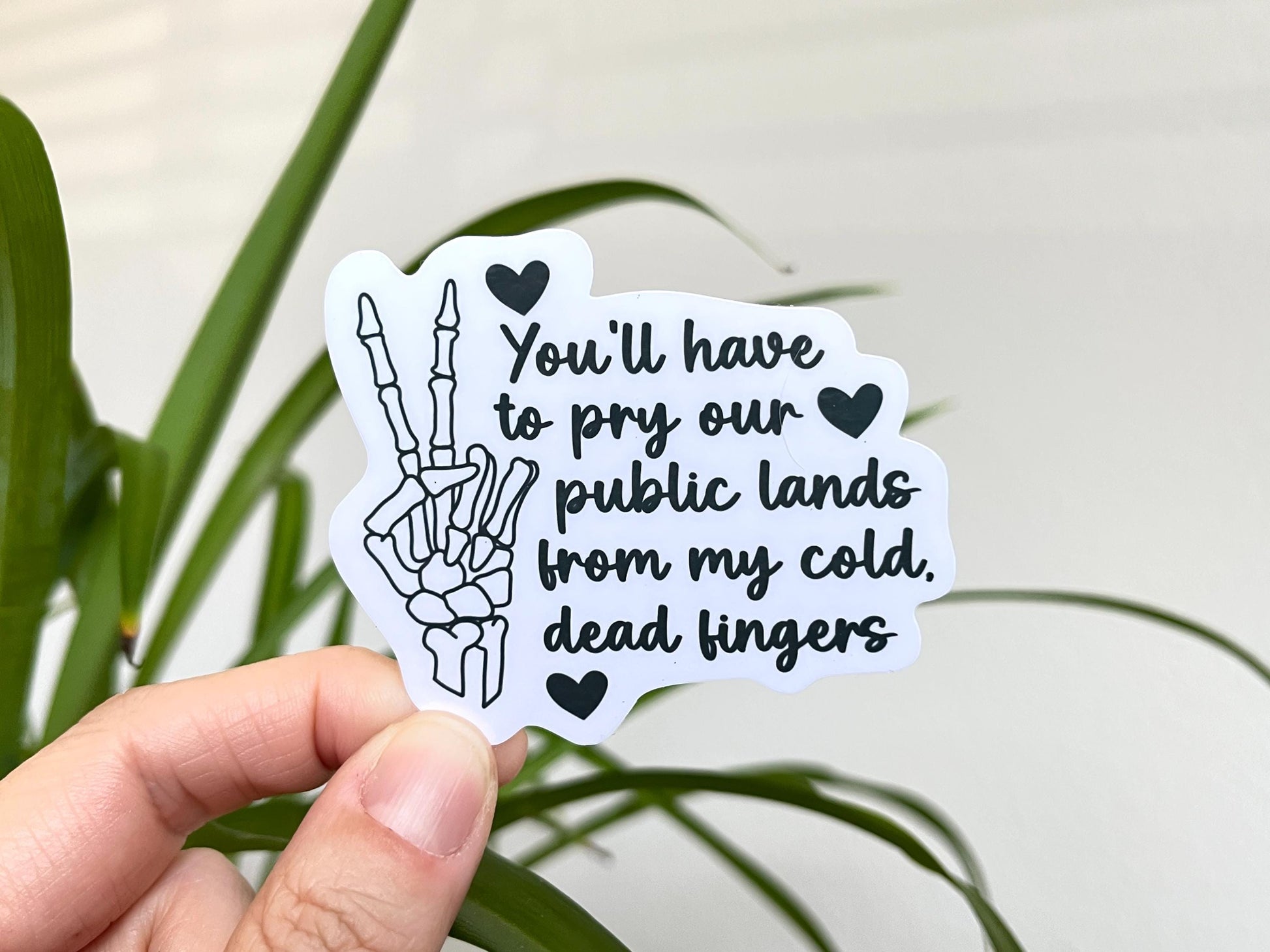 “You'll have to pry our public lands from my cold dead fingers“ waterproof vinyl sticker.