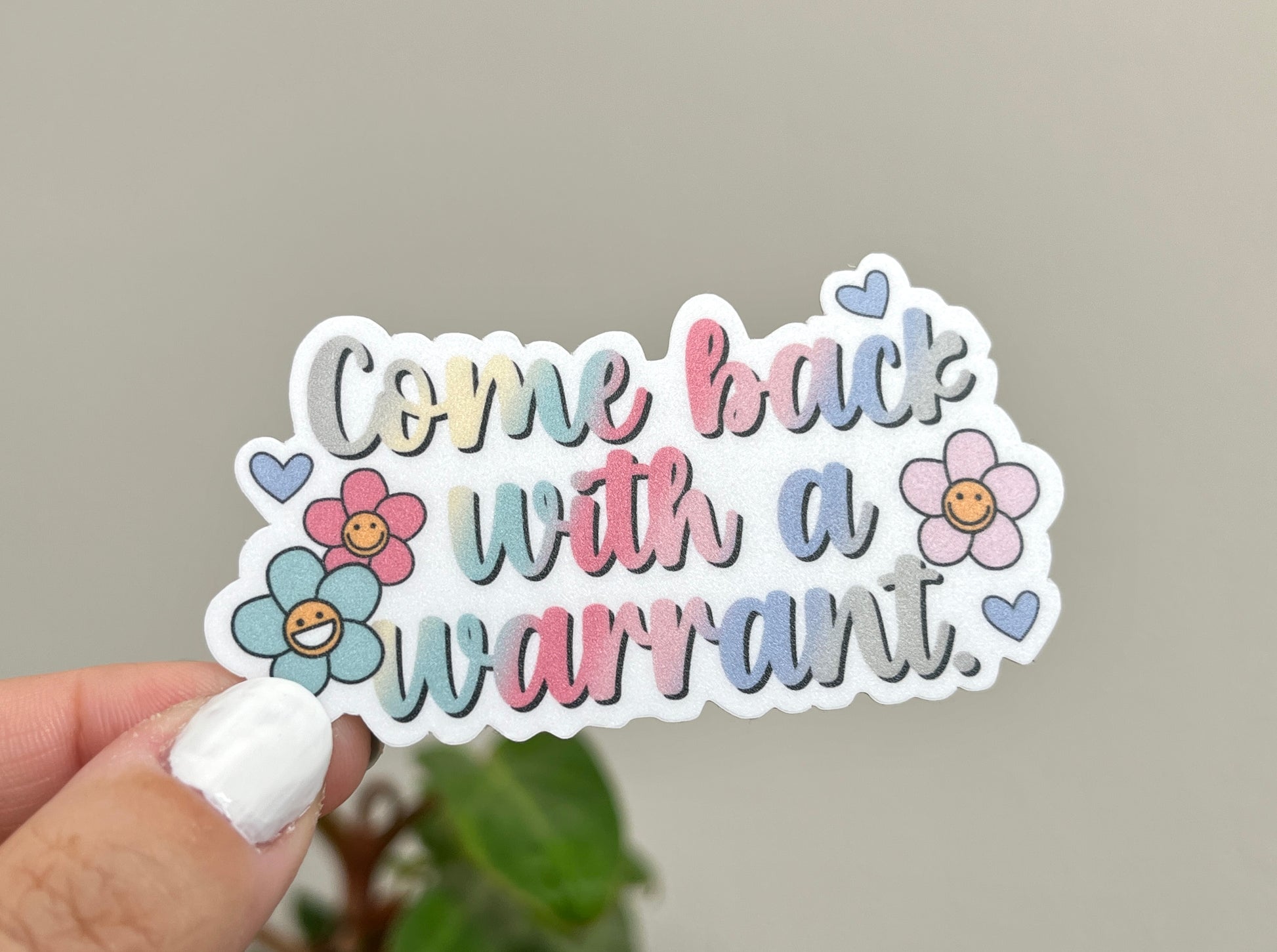 Come Back with a Warrant sticker