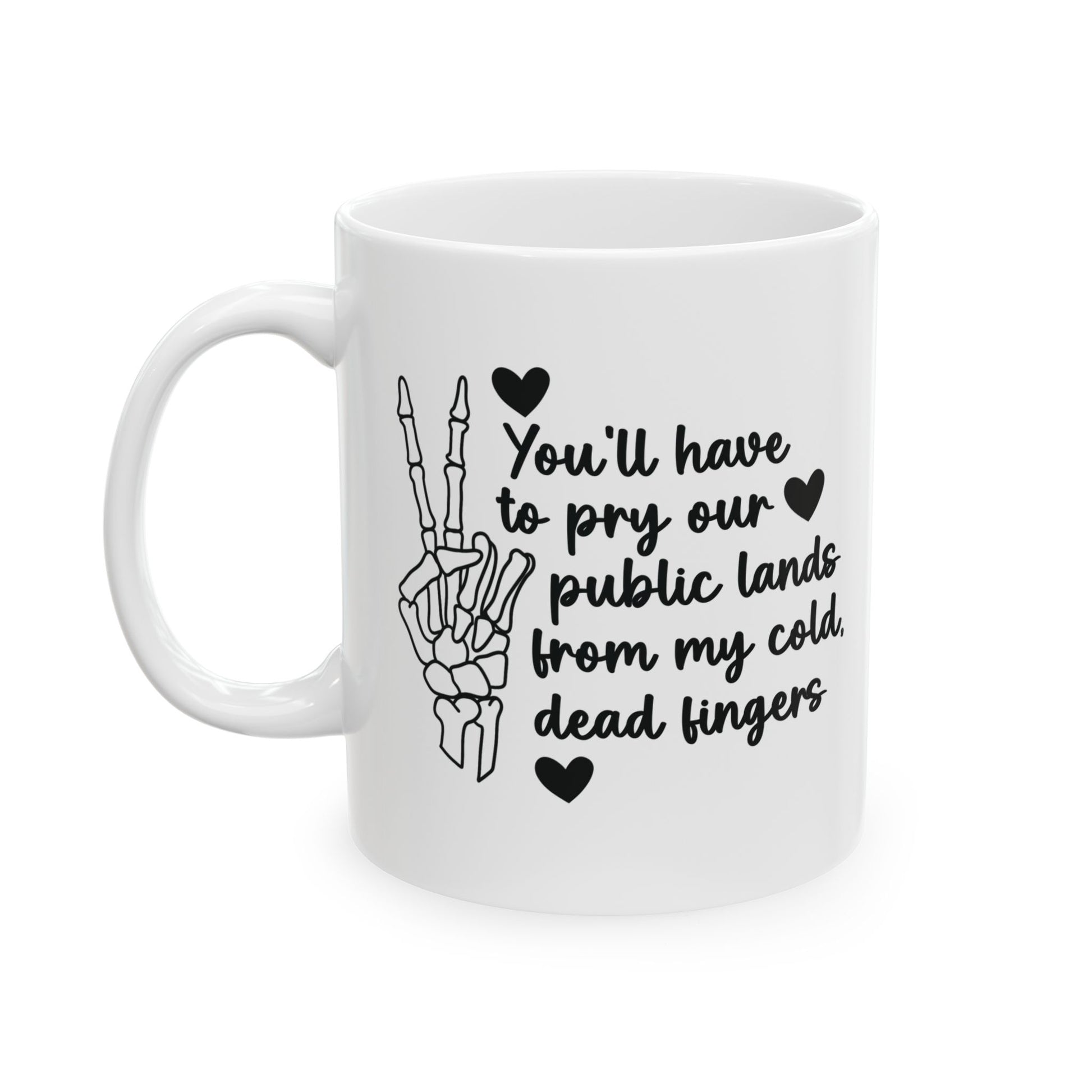 "You'll have to pry our public lands from my cold dead fingers" ceramic mug.