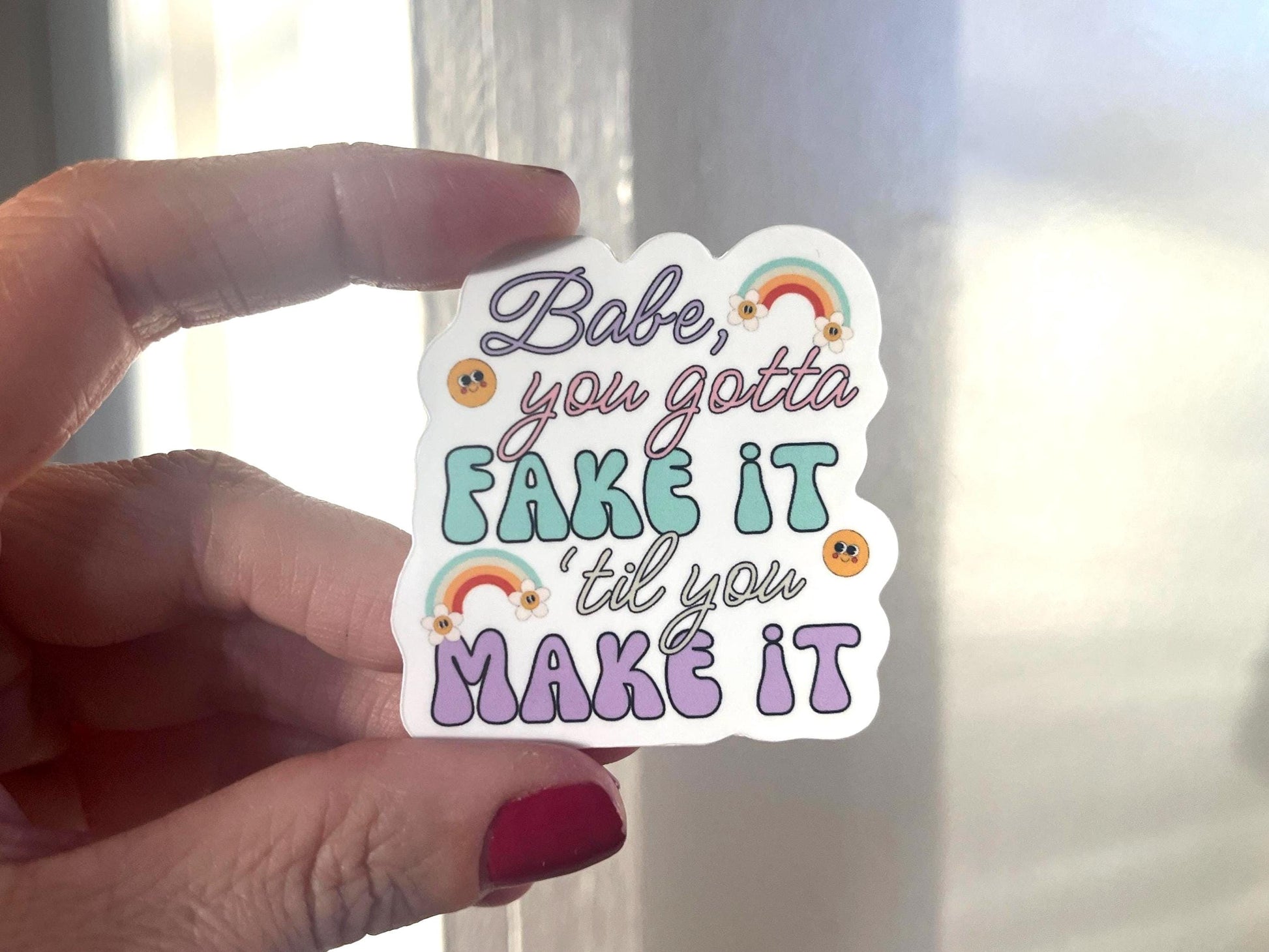 "Babe, you gotta fake it ‘til you make it" waterproof sticker.