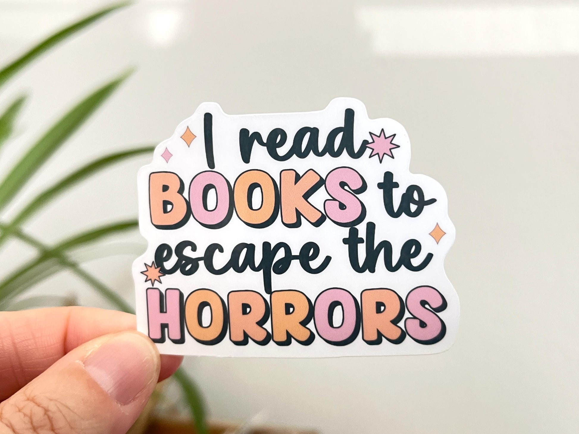 “I read books to escape the horrors“ waterproof vinyl sticker.