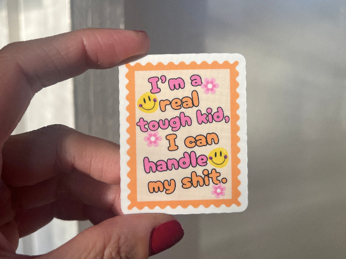"I'm a real tough kid, I can handle my shit" vinyl sticker.