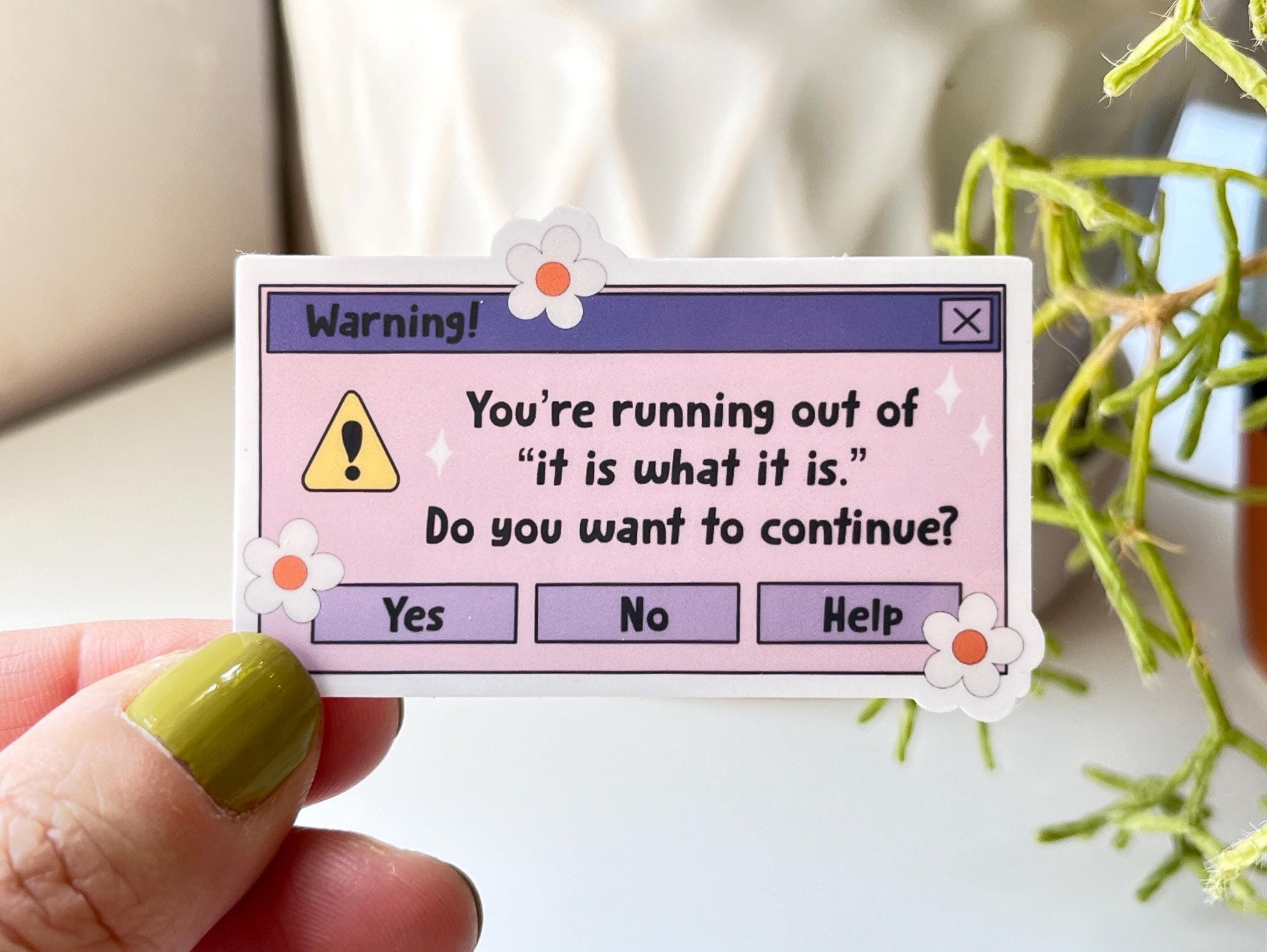 “You're running out of 'it is what it is'“ waterproof vinyl sticker.
