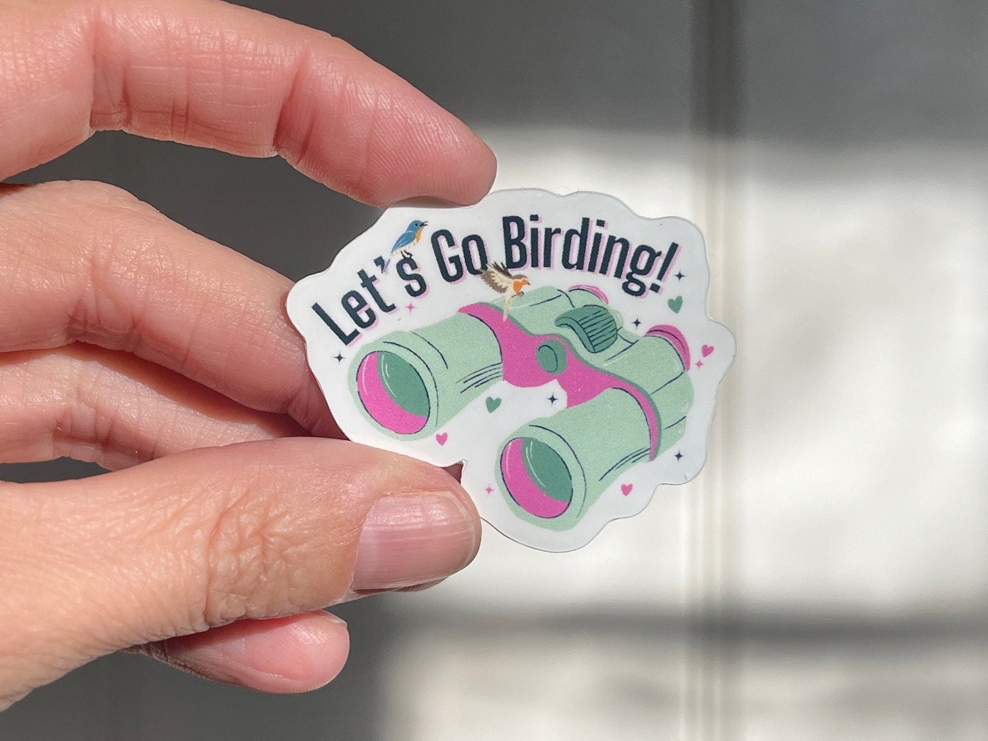 "Let’s Go Birding" waterproof vinyl space filler sticker.