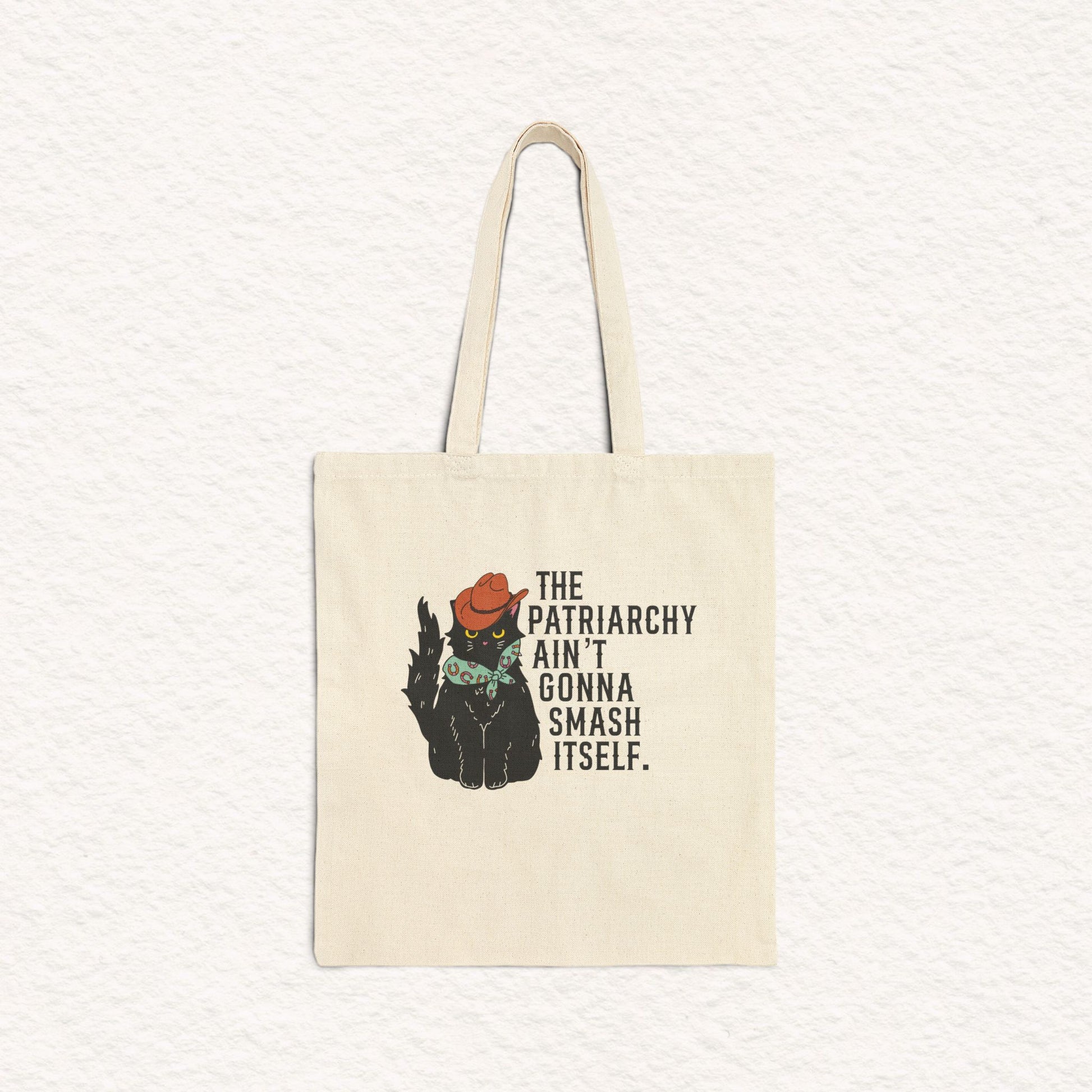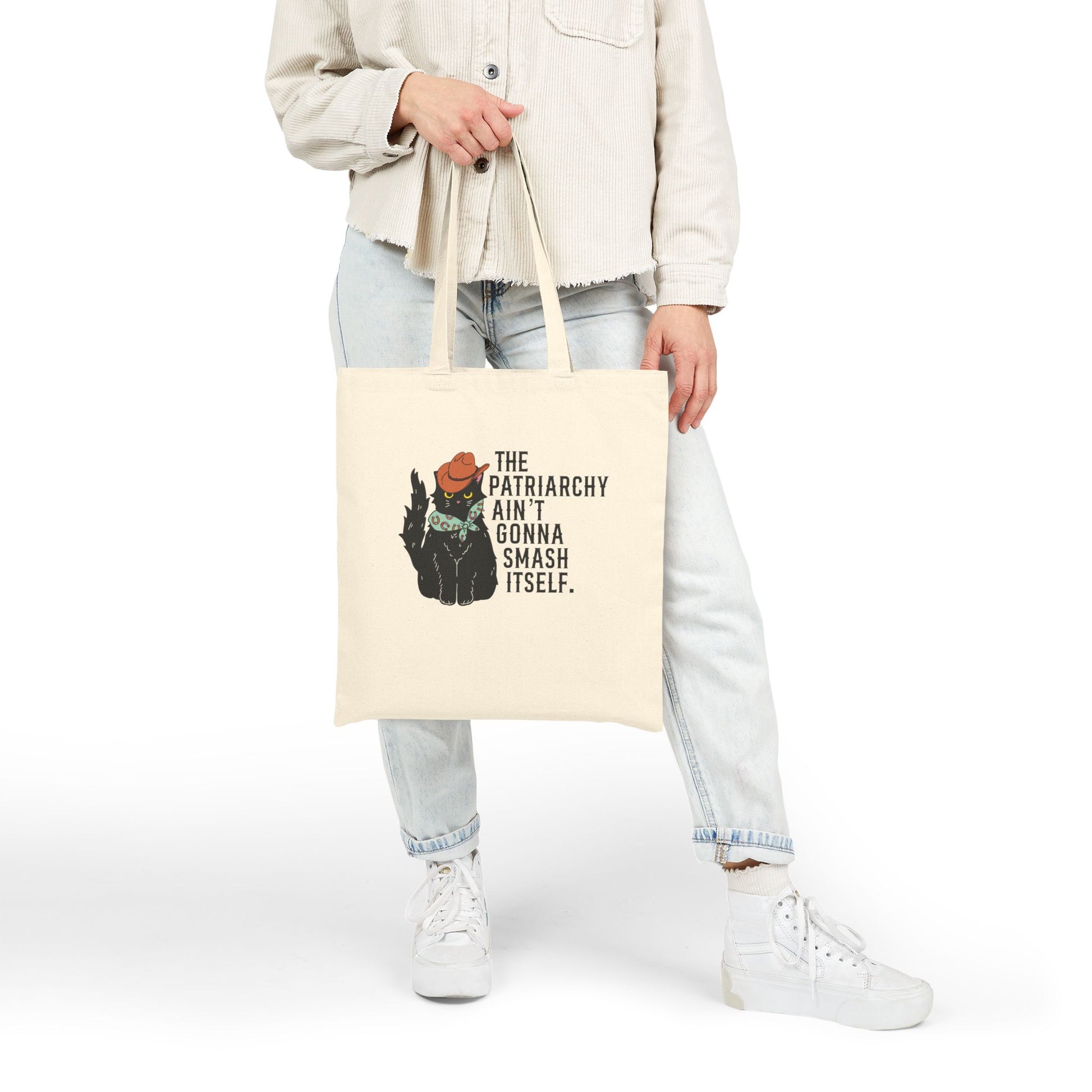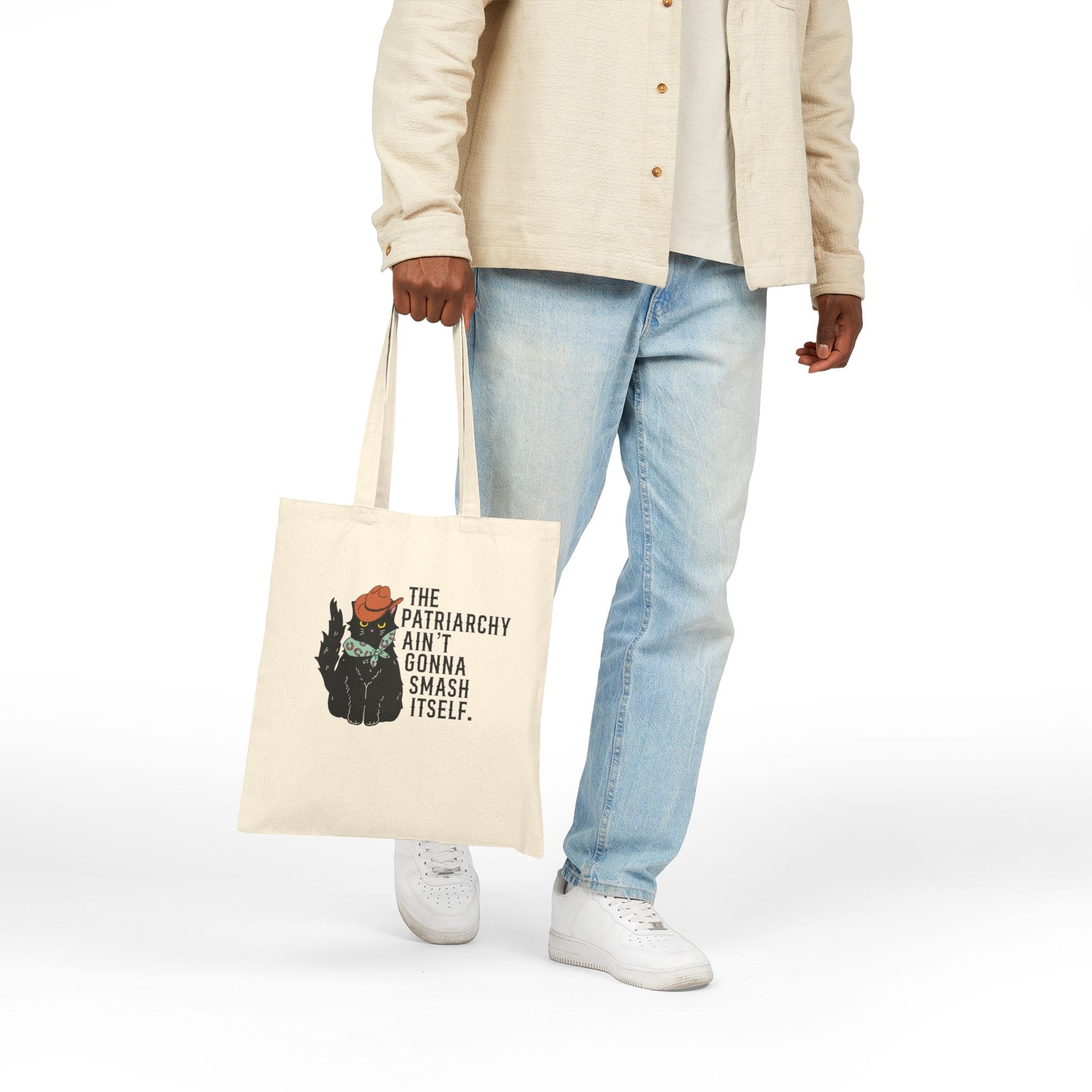 "The patriarchy ain't gonna smash itself" natural cotton canvas tote bag.