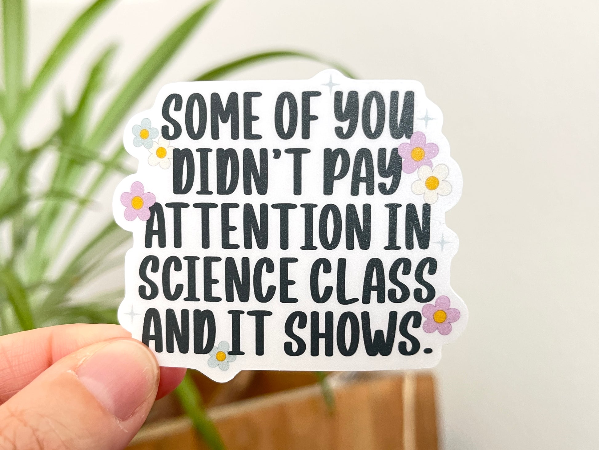 "Some of you didn't pay attention in science class and it shows" vinyl sticker.