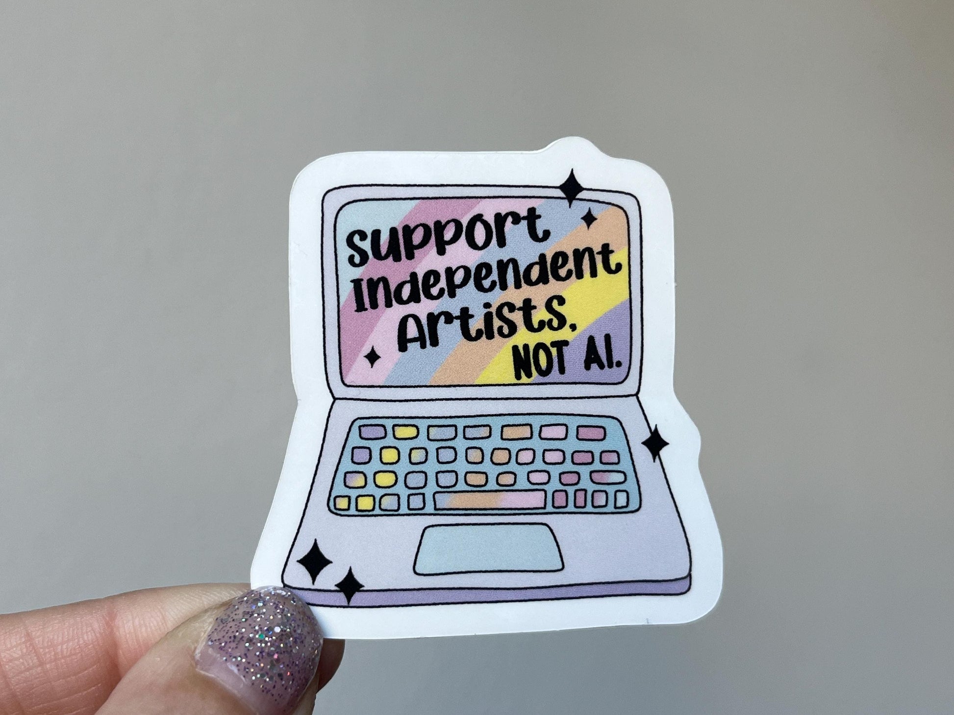 “Support independent artists, not AI“ waterproof vinyl sticker.