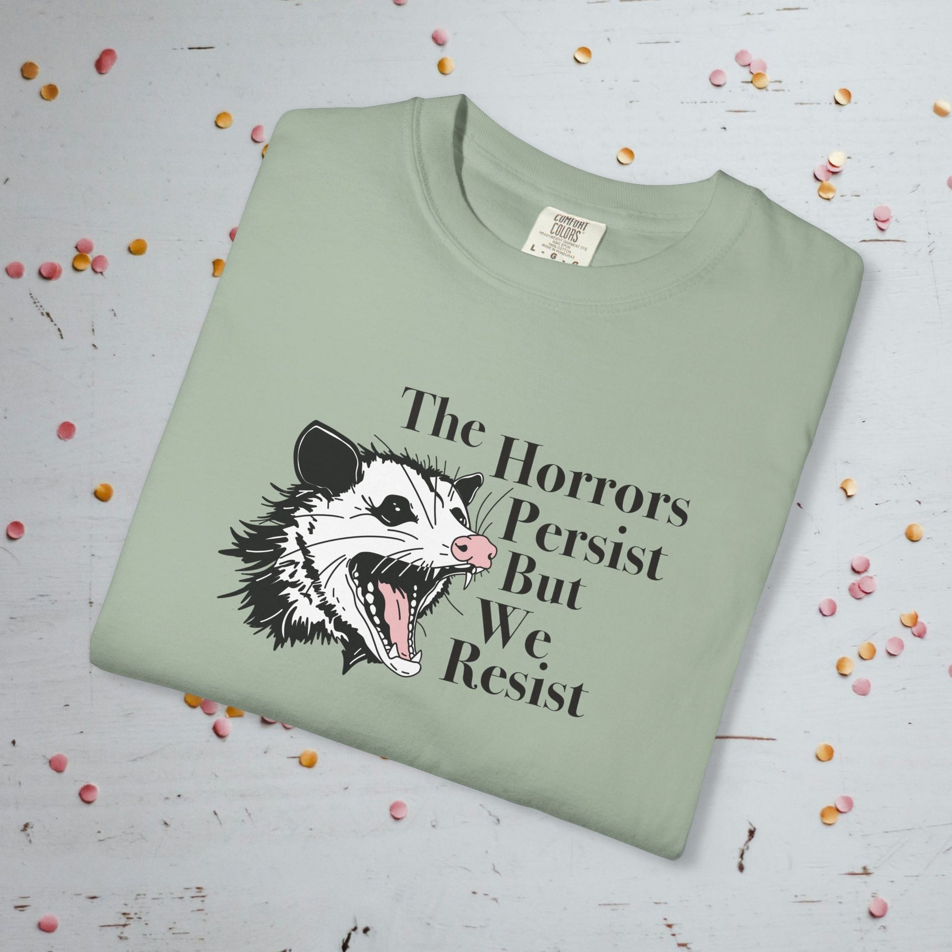"The horrors persist but we resist" Comfort Colors T-shirt.